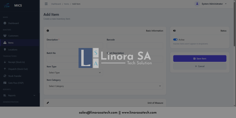 A Material Inventory Control System designed to streamline warehouse management, track stock levels, and improve operational efficiency.